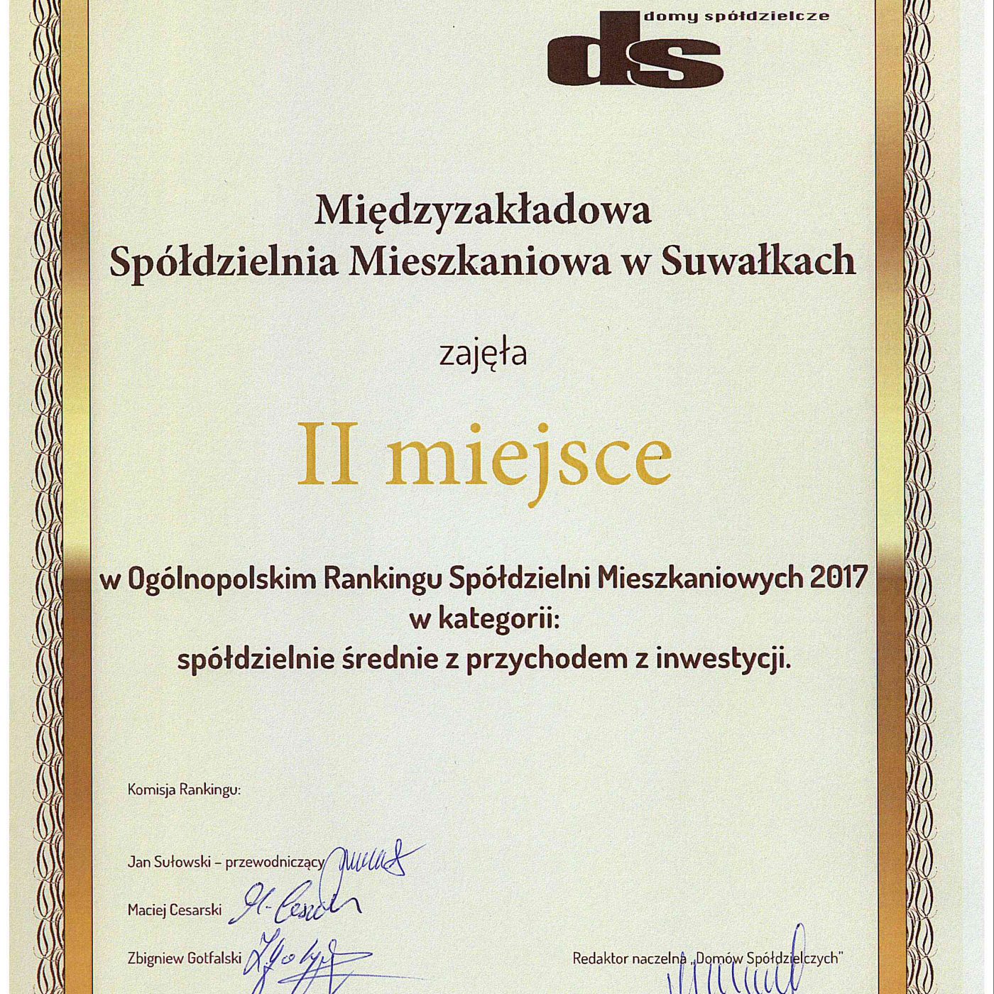 Nasza Spółdzielnia została wyróżniona w Ogólnopolskim Rankingu Spółdzielni Mieszkaniowych